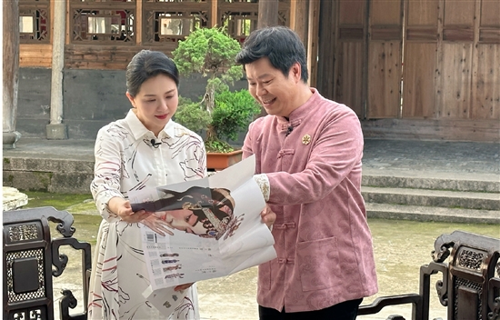 访谈结束后,陶慧敏向主持人赠予一本由木活字印刷的《琵琶记》,封皮是非遗蓝夹缬,作者高则诚是南戏鼻祖,也是瑞安人。“这是我家乡的艺术结晶,文化底蕴深厚,正是有了这样的文化传承,人的精神面貌、社会的发展才有根基,才会创造出今天瑞安辉煌的成就。”她自豪地向主持人介绍。