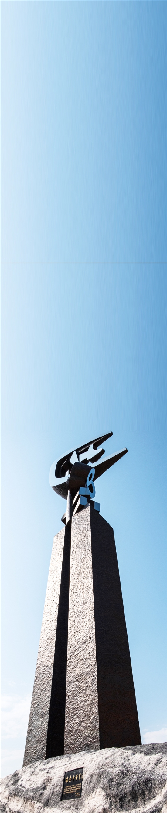 过了几个月就拿到曾教授的一个设计方案,经过讨论,这个方案整体上得到大家的认可,有原创性,很有气势。雕塑整体上看是一个人,反映了教育的本质是以人为本,顶部是甲骨文“星与空”及其演化,空字转了90度,更加有动感,像一只飞鸟,有放飞梦想之意,下面是甲骨文的星字,两个字组成了一个抬头眺望远方的姿势,像甲骨文的“望”字。甲骨文“望”字的象形意义是一个人侧身站在高高的土墩上,竖目,瞳子突出,有登高远看之意。站得高,才能看得远。中部两只巨大的脚踩在坚实的大地上,体现了“仰望星空,脚踏实地”的主题意境。雕塑之所以用甲骨文来表达,一方面是纪念瑞安中学的创始人孙诒让先生,他是中国甲骨文研究的开山鼻祖,表明瑞安中学面向未来,也要继承传统,同时甲骨文的线条非常刚性,做成雕塑张力很强,气势磅礴。底部巨大的花岗岩取自太行山,这块石头代表坚实的大地,又是一个人的一只肩膀,希望我们的学子能站在巨人的肩膀上,成就自己的人生,也可以看成是老师的肩膀,体现甘为人梯的师者仁心,反映亲密的师生关系。