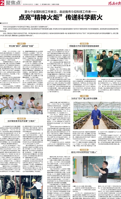 近日,记者走访了我市5名科技工作者。他们有的来自企业科技创新前沿,有的来自高校科研教育一线,有的扎根农村守护农业“芯片”,他们坚持科技创新与科学普及两翼齐飞,点亮了勤于钻研、勇于创新、勇攀高峰、追求真理的“精神火炬”。