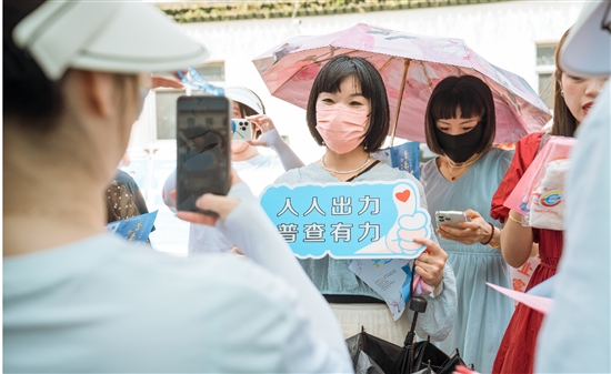 “经济普查每几年进行一次?”“‘五普经’的标准时间节点是什么时候?”“普查主要内容包括哪些?”……除了与“五经普”标语牌合影、参与“五经普”口号录制视频,“应援队”还现场参与“五经普”知识宣传与互动问答。“通过互动问答,我了解到经济普查是每五年开展一次,我们的工资也是普查的主要内容之一。”一鸣真鲜奶吧“90后”工作人员潘蒙说。