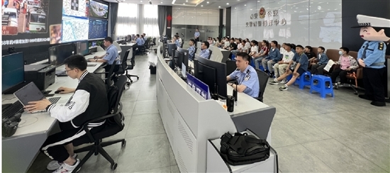 等同学们到齐后,交警阿姨带着我们来到了四楼的指挥中心,李队长向我们介绍了这里强大的指挥功能,一个实时监控的大屏幕,清楚地显示全市各地的路况,能随时快速切换到某一处的路况,如有道路拥挤情况,指挥中心能第一时间获知信息,并及时反馈处理。另外,屏幕上还能显示“鹰眼”、无人机、道路监控发回的全方位画面,让交通违法行为“无处可逃”,甚至连电动自行车、行人的交通违法行为也能被清楚地记录下来,存入系统。所以,提醒大家,一定要做一个遵守交通规则的人哦!
