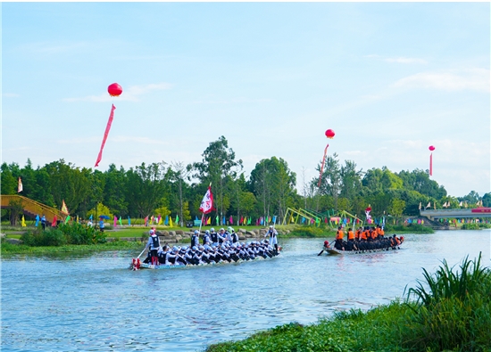 塘下、东山等镇街也举行了热闹的划龙舟活动。在中塘河塘下段的水面上,鼓点声如雨点般传来,划手们跟着鼓点奋力划桨呐喊,声震四方;一时间桨叶飞舞,水花翻腾,龙舟在水面上破浪疾行,精彩不断。