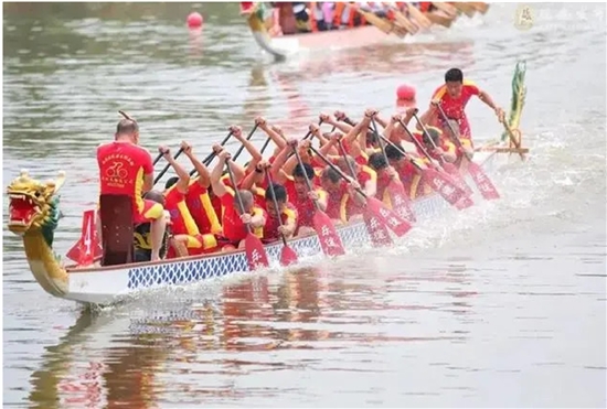 龙船不掉头,那怎么会划过去,又划回来,又划过去?原来他们是这么操作的:龙船要转方向的时候,鼓点咚、咚、咚、咚……密集而连续,所有的划手得到指令,会一起向后仰,当听到最后一个铿锵而有力的“咚”的声音时,迅速地将屁股转180度,这时前方就变后方、原来的后方就变前方了。随着鼓点的指挥,大家又齐心协力地向前划,完成第二个回合。当鼓点咚、咚、咚、咚……密集而连续时,划手们又一起向后仰,又将屁股转180度,又齐心协力地划第三个回合。可有意思呢!我们小孩子经常把一排凳子翻过来放在地上,然后坐上去,手拿棍子当划桨,模拟划龙船,嘴巴发出“喂、嗨,咚咚”“喂、嗨,咚咚”……到一定的时候,嘴巴又发出密集而连续的咚、咚、咚、咚……大家就把屁股转180度,又齐心协力地“喂、嗨,咚咚”“喂、嗨,咚咚”……玩得可高兴呢!这样的游戏,是玩不厌的。
