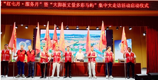 据悉,马屿镇“红七月·服务月”活动将围绕“学思想、当先锋、促践行”主题,开展主题党课教育、党员关爱服务、党员志愿服务、助力中心活动等。“大脚板丈量多彩马屿”集中大走访活动是该镇深入实施“红色根脉强基工程”,扎实推进干部联系服务群众制度化常态化的创新载体,将以用心访民情、真心解民忧、尽心抓发展为主要任务,通过开展一次青蓝帮带师徒结对,制作一份驻村手记,发放一张驻村社干部联系卡,开展一次政策宣讲,办成一批关键小事,排查化解一批隐患纠纷,推动一批发展项目,选树一批典型案例等“八个一”措施,推动驻村社干部“进百家门、解百家难、暖百家心”。会议还为村社平安综治党员志愿者巡逻队进行授旗。