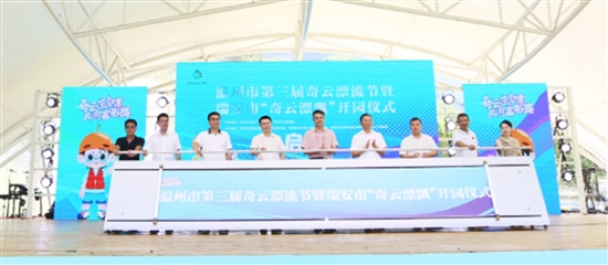 本报讯(记者 陈浩 范嘉文 王志)萤照曲流山川,岛连阡陌田园。7月8日下午,来自温州各地的游客共聚风光秀美的奇云山谷,迎来温州市第三届奇云漂流节全新启航,同时参与温州市重大文旅项目“奇云漂飘”乐园开园仪式。