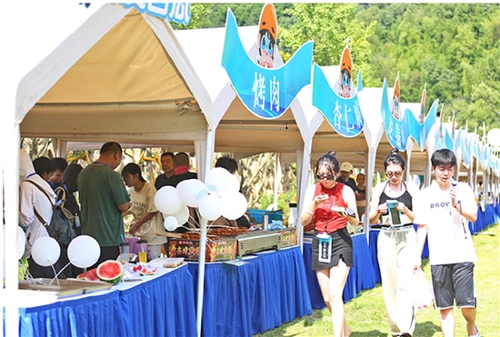 记者在现场看到,除了精彩的开幕式演出活动外,这里还设置了水陆两处共30多个非遗、美食特色市集摊位,满足游客们的不同需求。有吹糖人、瑞安米塑、瑞安糖金杏制作技艺、“高长发”茯苓糕制作技艺、瑞安陈氏烧饼制作技艺等非遗体验,有冰爽西瓜、奇云冰激凌、杏仁腐、椰子椰奶、牛排、现榨果汁、竹筒奶茶等特色美食。此外,还有水上天幕下午茶、夜间草坪天幕烤全羊等。