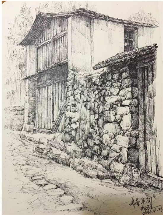卵石路两旁皆是荒芜的古民宅,块石墙被风雨侵蚀得有些斑驳,乱长的翠竹、横生的衰草,“屋在竹中、竹在屋外”,散发着幽幽的古韵。若是绵绵细雨中,打着油纸伞,从村道穿行而过,便有《雨巷》的诗意,又有几分古香古色的宁静与浪漫。