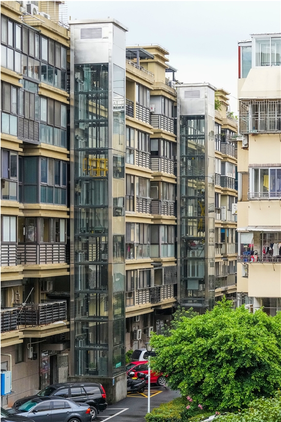 风荷花苑内楼栋加装电梯 (记者 孙凛/摄)