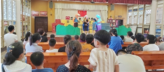在双桥村文化礼堂,一场儿童真人剧在这里上演。演出通过拟人化的互动形式,带领小朋友在欢声笑语中学习和了解“扫黄打非”相关知识,让他们从小树立抵制盗版、淫秽色情等有害出版物、色情网络游戏侵蚀的意识。