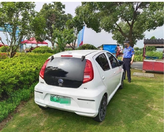 本报讯(记者 苏盈盈 通讯员 杨作乾)绿地是城市的靓丽风景线,更是改善生态环境的“氧气瓶”。然而,有车主为了一己之便,随意把车辆停放在绿地上,导致大片绿地受到碾压。日前,市综合行政执法局曹村中队执法人员在辖区巡查时发现,曹村镇垟心岛绿道庭院附近的绿地上停放着一辆车牌号为浙CD6****的白色轿车,车轮碾压过的草坪受到损害。执法人员随即进行现场勘查和拍照取证,同时联系当事人倪某某,告知现场相关情况,责令其立即返回现场将车子驶离草坪。