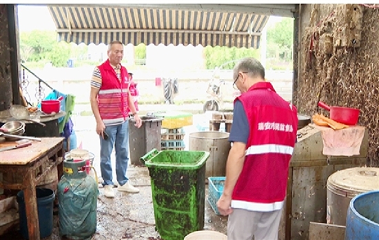 现场,市民监督员还发现,该家禽屠宰加工点地面的污水夹杂着禽类的血水和羽毛,汇集到门口的一处窨井。虽然该处道路已经做了雨污分流,但是两个窨井挨得很近,仍会有部分污水流入边上的雨水窨井,排放到旁边的塘河内。“地下的脏水一定要处理好,不要流进雨水管道里,避免污染旁边的河道。希望老板一定要把卫生搞好,保障食品安全。”市民监督员戈银法说。市民监督员也希望有关部门能够给予正确指导,使加工点的环境和卫生变得好一点。