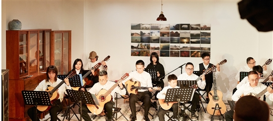 他还特别注重为学生提供演奏平台,每个月、每个季度,都会在吉他馆举办音乐汇演,不定期带学生进文化馆、电影院、剧院表演。在一次次的独奏、弹唱、乐团合奏中,在与小提琴、长笛、萨克斯、钢琴等其他乐器的配合中,学生们沉浸于音乐的美妙旋律,也体会着音乐表演带来的成就感。