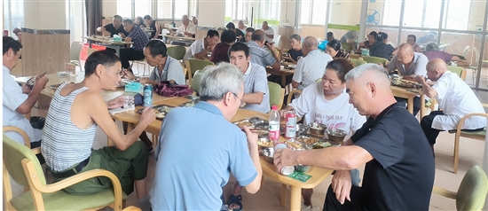 每日午餐和晚餐时间,湖西村邻里食堂很是热闹。在志愿者的帮助下,该村的老年人端着热气腾腾的餐盘,一边在餐桌旁就餐,一边与乡亲闲话家常。