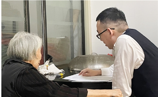 10月20日,公证处工作人员来到汀田街道繁荣富强公寓,为孙老进行上门公证服务,办理城中村改造承诺书公证,全程采取录音录像形式,确保公证真实有效。在询问过程中,老人多次提到她有不清楚、不明白的地方,工作人员都细心逐一解释,直至老人知晓此次公证的事项。工作人员根据实际情况核实当事人身份、制作谈话笔录,有效保障了公证的顺利办理,于当日下午完成公证书制作。