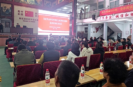 本报讯(记者 林瑞蓉)每月16日是潘岱街道主题党日活动日。11月16日晚上,一场特殊的主题党日活动在该街道桃花源社区举行。该社区近百名党员汇聚一堂,认真聆听由市民社堂理论宣讲工作室带来的学习习近平总书记考察浙江重要讲话精神的主题宣讲。
