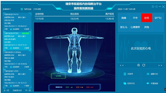 市人民医院瑞祥院区急诊科主任潘光华表示:“‘上车即入院’改革实现了信息化精准赋能,急救医生在救护车上就可通过院前院内协同救治平台,将患者信息传送到院内,进而实现病情提前预警、院内人员提前准备并获得院内专家团队支持。患者在送上救护车的同时,相当于已经‘入院’,大大缩短了患者的等待时间,为院前危急重症患者开辟高质量救治的‘生命绿色通道’。”