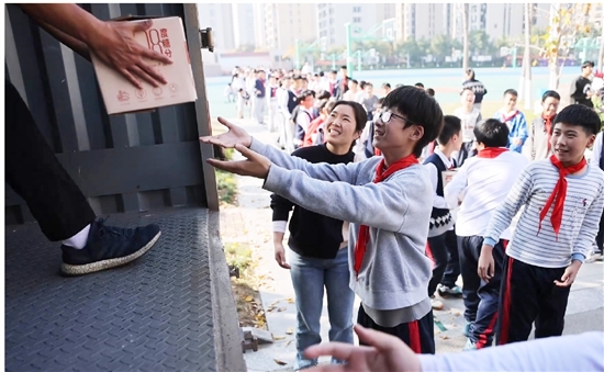 当天13时,装载着1000多箱阿克苏苹果的货车缓缓驶入瑞祥实验学校。该校五、六年级的300多名学生在老师、家长志愿者的帮助下,将一箱箱苹果从车上搬下来,并按照认种情况派发到各个班级。