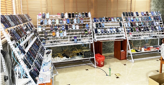 今年5月份,市公安局网络安全保卫大队在工作中发现,家住锦湖街道的郑某在家中布置大量手机墙,使用自动化脚本在某短视频直播平台实行自动浏览。