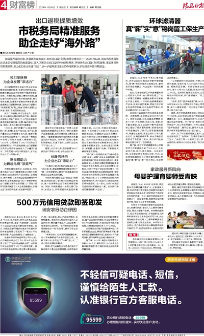 据悉,浙江环球滤清器有限公司始创于1993年,2023年该公司生产的机油滤清器达到一亿只,稳居亚洲前列,工业产值实现逐年递增。为了将“抢”到的订单尽快投产,该公司早早谋划,为员工准备“坚持到底奖”、春节红包、留守大礼包、家乡味年夜饭等特色礼包,留心留人。