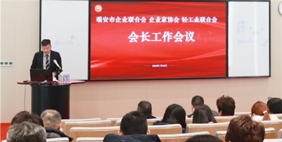 日前,瑞安市企业联合会、企业家协会、轻工业联合会召开了会长工作会议。会上讨论了2023年协会工作报告和理事会成员调整名单。