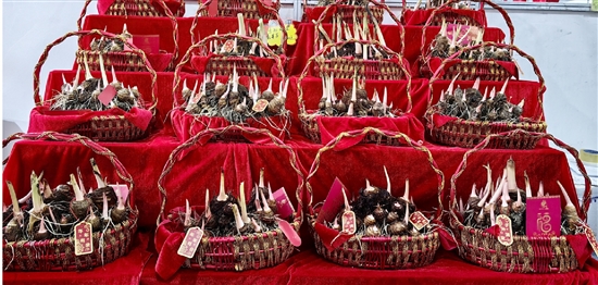“我第一次知道民族村红芽芋,没想到还能整株卖。这个芋头寓意好,包装也喜庆,年底正好有亲戚乔迁,我准备买两个,一个送亲戚,一个放自己家。”市民谢先生听完介绍后,当即付款,提走了两篮:“百来元能买到寓意好又送得出手的伴手礼,我觉得很划算。”
