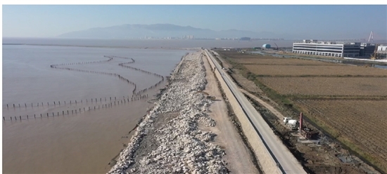 镜头:去年11月底,在瑞安市海塘安澜工程(丁山二期海塘)项目现场,数台挖掘机正在进行镇压平台以及外海侧抛石挤淤施工,对海塘提标加固。该项目是省“千项万亿”重点工程,于去年4月份开工建设,预计2025年底完工,建成后设防标准从20年一遇提升到100年一遇。