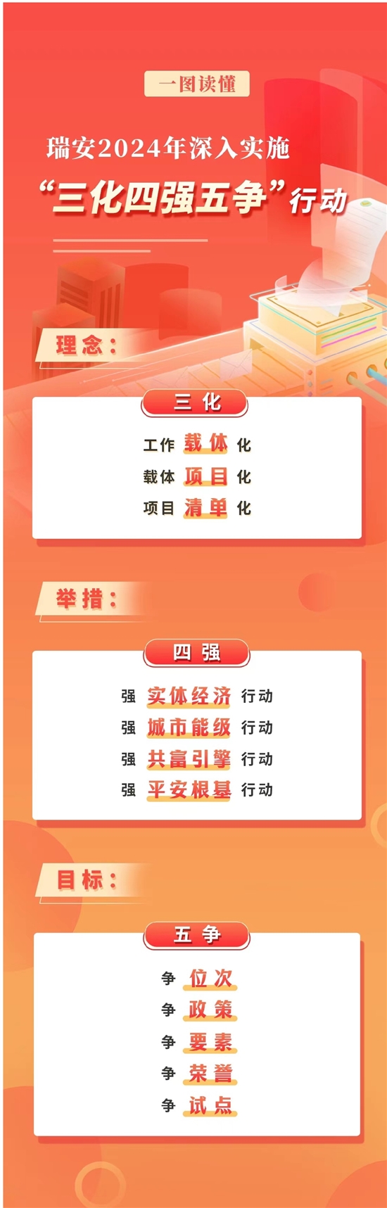 李坚强调,争先之年必须干出“争先业绩”,要强实体经济,聚力扩投资、攻项目,强创新、促转型,促消费、旺市场,打造创新发展新高地;强城市能级,以“四区一带”优化城市格局,以大干交通拉开城市框架,以绣花功夫提升城市品质,以系统思维打造和美乡村,呈现现代城市新气象;强共富引擎,在“扩中提低”、优质均衡、文化建设上先行示范,构建群众幸福新生活;强平安根基,紧盯政治安全、安全生产、消防安全、信访维稳、社会治安,抓实抓细平安建设各项措施,迈上社会治理新台阶。争先之年必须创造“争先环境”,打响“来瑞安·心最安”营商环境品牌,做优政务、法治、市场、经济生态、人文五个环境,实施政务服务增值化改革优化提升等十大行动,打造全省营商环境县级标杆城市。要牢固树立“办好企业的事就是办好自己的事”理念,坚持“随叫随到、服务周到、说到做到”,政策要制定更准、落实更快,让政策红利“应享尽享”;降低要素成本和融资成本,让成本负担“应降尽降”;“线上办”要更智能、“就近办”要更便捷,让助企服务“应优尽优”;服务要言出必行,执法要包容审慎,让正当权益“应保尽保”。争先之年必须汇聚“争先力量”,树牢“大人才观”,建强敢拼敢闯的党员干部队伍、勇创大业的战略人才队伍、奋勇搏击的企业家队伍、素质优良的技能人才队伍和厚植乡土的“三农”人才队伍。