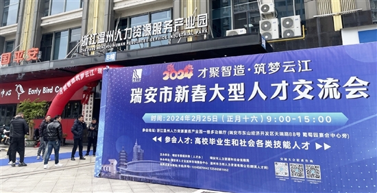 “春节假期回来,我们企业已经参加了好几场招聘会,这场最为期待。”“早早就得知要召开此次人才交流会,选定了几家企业,今天来详细了解一下。”……2月25日(农历正月十六),位于瑞安市天瑞路88号浙江温州人力资源产业服务园一楼人头攒动,2024才聚智造·筑梦云江——瑞安市新春大型人才交流会在此举办。