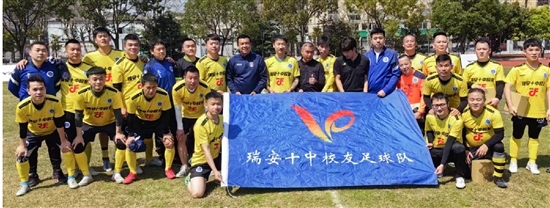 在瑞安十中体育场上,徐亮、荣昊分别率领7名瑞安十中校友足球队队员,举行8人制足球趣味赛。