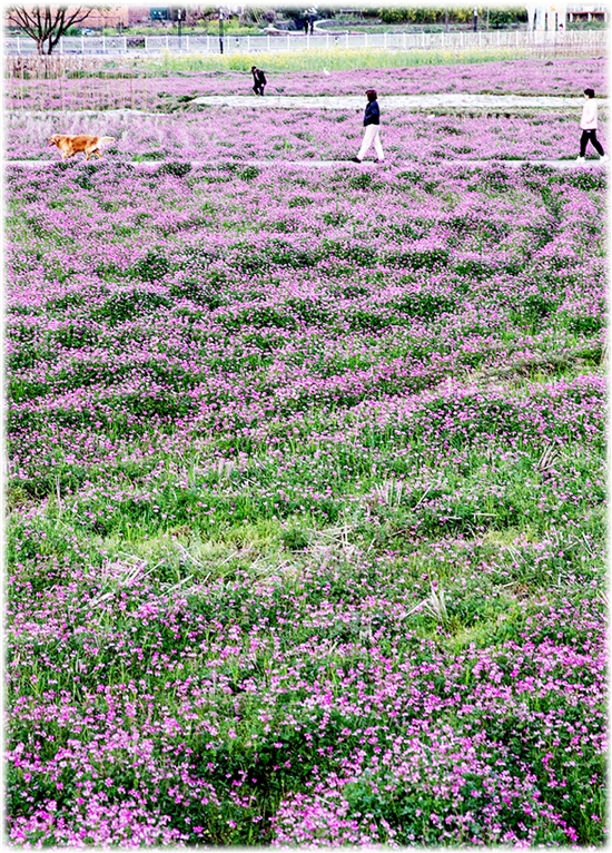 日前,位于平阳坑镇的紫云英花迎春绽放,连片的紫色花海美不胜收。 (记者 苏立锁)