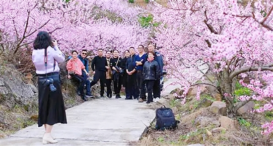 本报讯(记者 林长凯)连日来,潘岱街道寺前桃梅基地里,桃花开得正“欢”,树上粉嫩娇红的花朵惹人喜爱,吸引不少游客前来赏花,成为近期春游赏花的热门打卡地。游客们徜徉“花海”,或拍照打卡,或录制视频发朋友圈,记录尽情享受春光的美好时刻。
