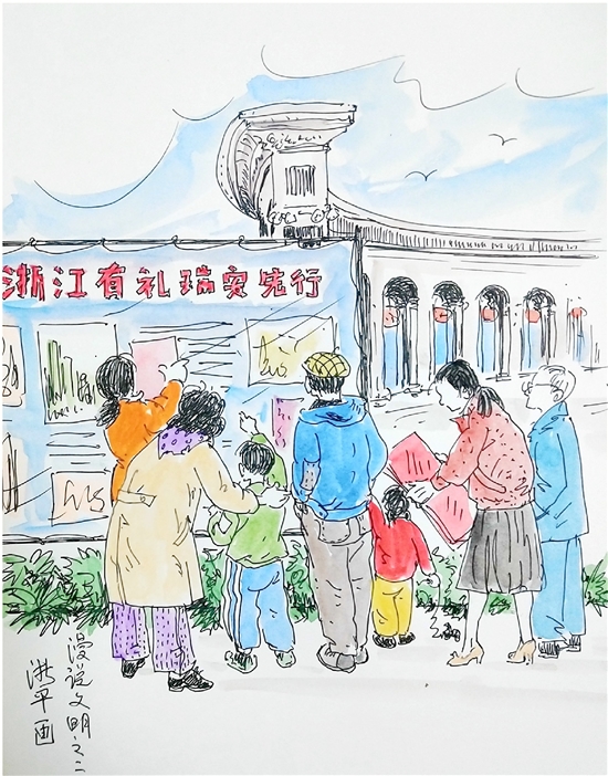 征集设计具有瑞安特色的“浙江十礼”宣传海报,发动各乡镇(街道)在全市新时代文明实践阵地、城市景观、交通节点、公共交通工具、公共场所、住宅小区等宣传橱窗滚动式播放宣传海报、标语等……瑞安多渠道多方式普及宣传“浙风十礼”,让“有礼”元素渗透社会每个角落。