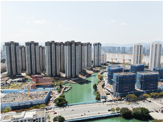 走到几幢刚刚落成的高楼之间,两辆挖掘机正沿着规定的驳岸挖泥,再过个把月,这里将挖出一条6米深、12到18米宽、350米长的人工河,和绕城的北濠河贯通,一起通向奔涌的飞云江。