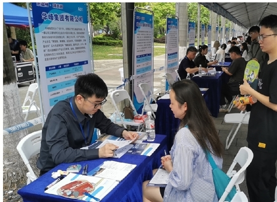“让员工生活得更好是我们的责任。华峰集团有23个社团……”作为路演宣讲企业之一的华峰集团,现场向学生介绍企业文化与发展前景,并发布企业招聘岗位。为了吸引学生关注,华峰集团打出“文化牌”,现场展示企业工作、居住环境以及企业文化等方面内容。