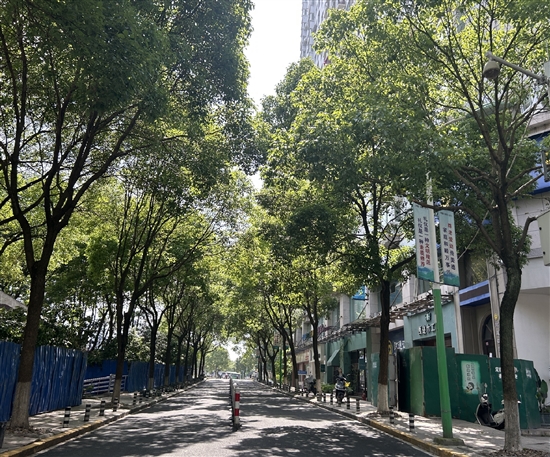 道路白改黑,原来坑坑洼洼的混凝土路面变成了崭新平坦的沥青路面;阳光透过行道树的枝叶,零零落落地洒在路面上……走在河滨路,不少市民发现,这条塘河边的小路不仅变得“好走”了,更变美了。