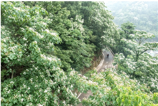 初夏时节,眼下高楼镇山野间的野生油桐花开正艳。公路旁、小道边、林荫下,一簇簇油桐花盛开如锦,层层叠叠的白色花朵,点缀在漫山遍野的绿意之中。据悉,温州地区的油桐一般每年4月至5月开花,花期约一个月,花开繁密,又称“五月雪”,具有极强的观赏性。