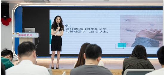 本次课堂在互动讨论中拉开帷幕,围绕“你觉得男女生之间的差异是什么”“交友过程中可能会有哪些障碍”等问题,引发学员们思考,并书写出答案。随后,谢需通过播放视频、理论分析、游戏互动等形式,指导大家如何化解恋爱中的沟通问题,保持开放心态,以确保亲密关系稳定发展。
