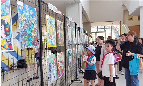 在城市生活垃圾分类宣传周活动现场,手绘海报设计大赛作品主题各异、角度新颖,包括警示、引导和科普等内容。不少孩子和家长在作品前细细品位,纷纷点赞作品的无限创意。