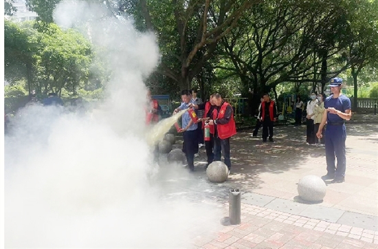 本报讯(记者 黄丽云 通讯员 杜宇婧)日前,在市区风荷社区,一栋居民楼内“浓烟滚滚”,住户们弯着腰,用湿毛巾捂着口鼻,有序地沿着逃生通道撤离……这是我市组织的“消防演习大练兵”培训活动中的一幕。此次培训对象为我市部分高层建筑小区的物业管理人员和小区住户。