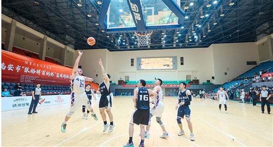 决赛现场,球员们在赛场上奋力拼抢,三分球、扣篮、盖帽……引来场下观众阵阵喝彩。在公开组决赛中,中升鞋材队一路稳健发挥,战胜DRC战队取得胜利;在企事业机关组决赛中,瑞安前卫队与瑞立集团队战况胶着,最终,瑞安前卫队凭借整体优势,赢下比赛。