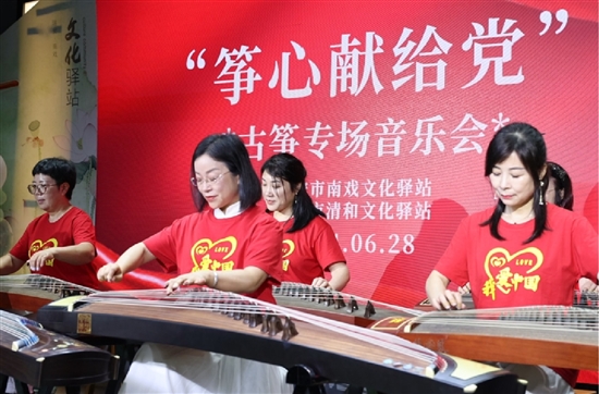 本报讯(记者 蔡鹏程)6月28日晚,一场别开生面的“筝心献给党”古筝专场音乐会在市南戏传承研究中心举行,我市文艺工作者以及文艺表演团队齐聚舞台,庆祝中国共产党成立103周年。