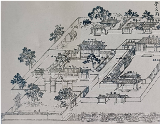 古代县学又名儒学,以孔子为历代读书人的永久老师。历朝皇帝为表示对读书人的重视,对孔夫子不断增加封号,到清朝便称他为“大成至圣先师”“素王”等称号。于是,县学里都要有建筑物作为纪念、拜谒孔子的庙堂。清朝时,瑞安学宫里有大成门和先师殿。殿里设孔子及其门徒的牌位或塑画像,定期祭拜,表示“尊师”之意。还有明伦堂,是集中生员或地方绅士讲述重要儒家经典的地方。“明”是明白之意,“伦”,是指人伦、五常,是儒家对人们之间关系的伦理道德。明清时读书人犯了错误,可以在明伦堂里向先师认错来替代处罚。