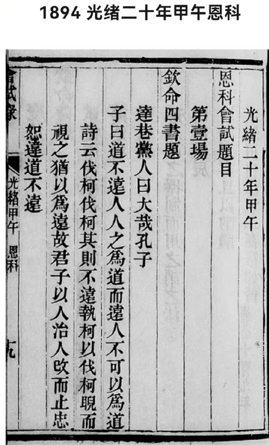 乡试每三年举行一次,每次考试均定于八月,是选拔举人的考试。会试头场写三篇八股文,一首试帖诗;第二场根据命题写五篇八股文,每篇八股文700字以内;第三场五道策问,每题需300字以上。1889年10月10日,《申报》刊登《己丑恩科浙江乡试题名录》,中举155人,瑞安三人中举,项芳兰、唐辅墀都备注“瑞安附”,即附生,许黼宸备注“瑞安拔”,即拔贡生。洪锦标光绪十一年(1885)中举人,十五年考取八旗觉罗学教习。