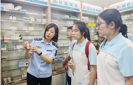 据了解,去年7月,市市场监管局玉海所与瑞安市第十中学签约,设立研学实践基地,立足市场监管职能,通过实地参观和理论讲解等方式,让学生沉浸式感受市场监管工作,进一步拓宽学生视野,为学生学业生涯规划提供参考。当天,该所在去年医药主题研学活动的基础上,再度与浙江惠仁医药连锁有限公司合作,举办了玉海市场监管所研学基地第二届学生学业生涯规划研学实践活动,为16名师生带来了别具特色的“药学堂”。