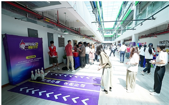 在“慧眼识别骗局”游戏区,大家踊跃答题,通过猜字谜的形式,大家轻松熟知各类电信网络诈骗的惯用伎俩;在“在线反诈考试”区域,大家则需在指压板上完成一场“痛并快乐”的答题之旅,答对10题即可过关;在“疯狂套圈”游戏区域,参与者需先抽取诈骗案例,快速判断诈骗类型后,再投掷套圈,精准套中对应诈骗类型;在“反诈大转盘——天下无骗”游戏区域,参与者转动转盘,边读标语边跳绳,完成50下即可过关;在“警民同心一网打尽”游戏区,参与者正确回答问题后,在指定区域击倒5个保龄球即可通关。