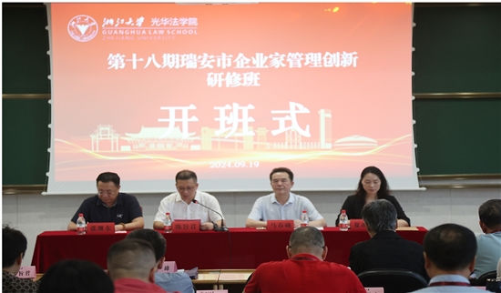 “在浙江大学举办此次企业家管理创新研修班,正当其时,恰逢其势。”在开班仪式上,市工商联副主席陈旨君说,此次与浙大合作,主要目的是助力加强我市高水平企业家队伍建设,希望借助浙大教授的宏观视角把新发展理念和新经济形势更生动地传递给瑞安的企业家们,也希望各位学员借此学习机会,学以致用、学以促干,聚力新质生产力发展,持续激发民营经济“两个健康”新活力。