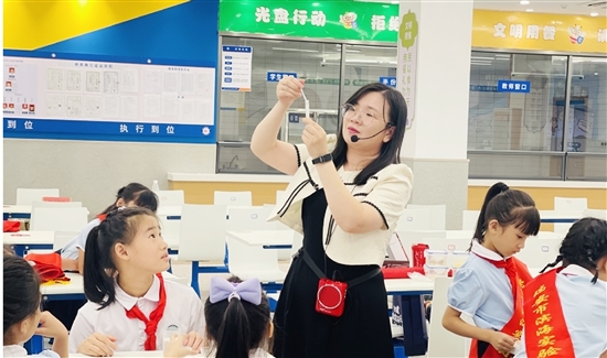 “我可以把保健品当糖吃吗?”“大人吃的药剂量减半,我可以吃吗?”“为什么吃完饭有时候肚子会咕噜响呀?”……科普基地里丰富的图文展板和科普视频吸引了学生的目光。在互动交流中,大家进一步了解了常见的食品药品安全问题,以及如何养成科学、合理的饮食卫生习惯,摒弃浪费陋习,做绿色节约消费的践行者。