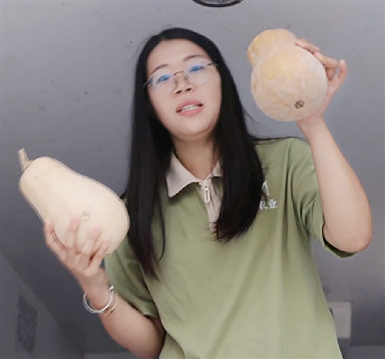 胡倩倩认为创新对于农产品销售也很重要,比如对农产品进行加工,提升其附加值。像南瓜的市场价较低,但做成南瓜包、南瓜面条后价格就会提高。说起农产品,胡倩倩就滔滔不绝,拿起货车上新到的南瓜就开始介绍。