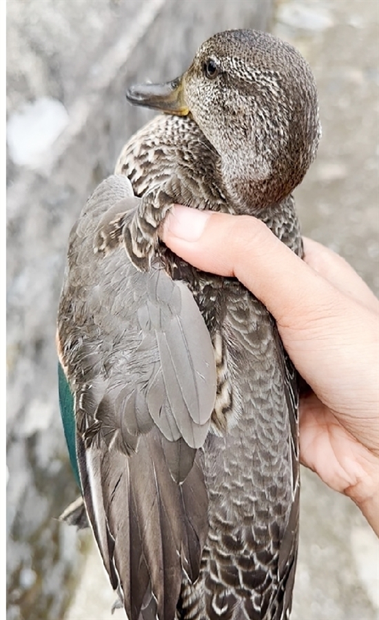据了解,这只可爱的“水鸟”是一只小野鸭,属于国家二级野生保护动物。经过一夜的悉心照料,小野鸭状态良好,体力恢复。曾陈娟将其带到宜居水域,小心地放归到大自然。