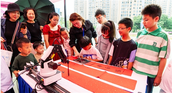 本报讯(记者 林翔翔 孙凛)“手握”毛笔蘸上墨汁,在红色的对联纸上,一笔一画写下“春眠不觉晓”的诗句,笔墨纸砚都是真的,唯独“书法家”是一个机械臂。更神奇的是,这位“书法家”在短短两分钟内,现场临摹了一名小学生的字体,连笔锋的“抑扬顿挫”都一模一样。